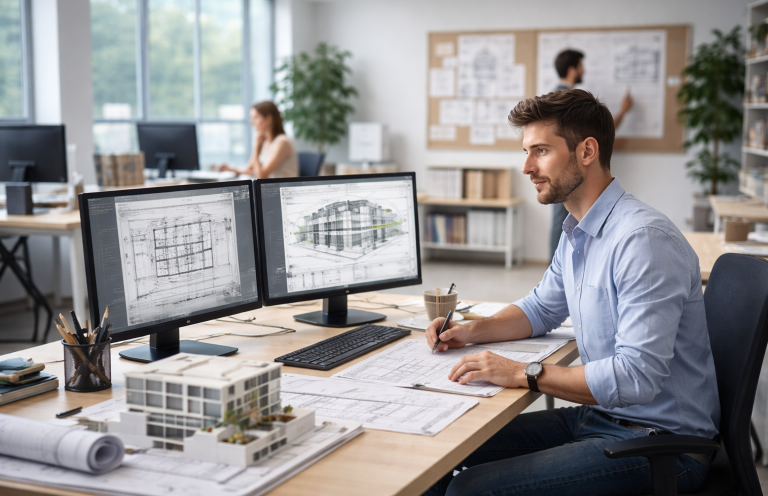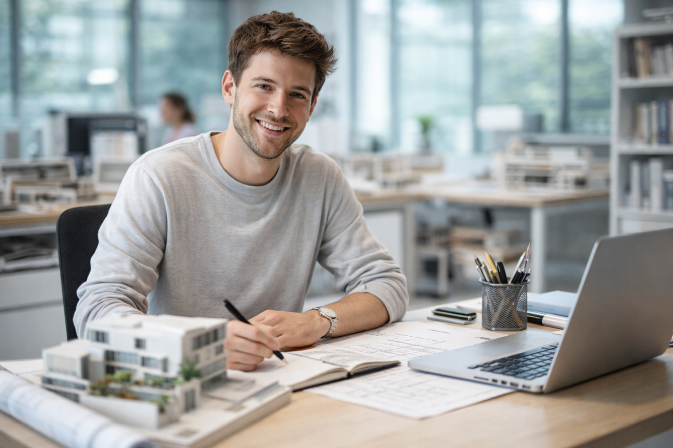 Als studentischer Mitarbeiter unter-stützt du das Team flexibel – je nach Schwerpunkt und Semesterstand. Das kann Projektarbeit sein (z.B. Recherche, Visualisierung, Modell/ 3D, Planaufbereitung) oder Unterstützung im Tagesgeschäft. Du lernst echte Abläufe kennen, be-kommst Einblick in Entscheidungen und kannst Schritt für Schritt mehr Verantwortung übernehmen. Wich-tig sind Neugier, Zuverlässigkeit und der Wunsch, schnell besser zu werden – bei uns bekommst du dafür gute Anleitung, moderne Tools und ein Team, das Wissen teilt.